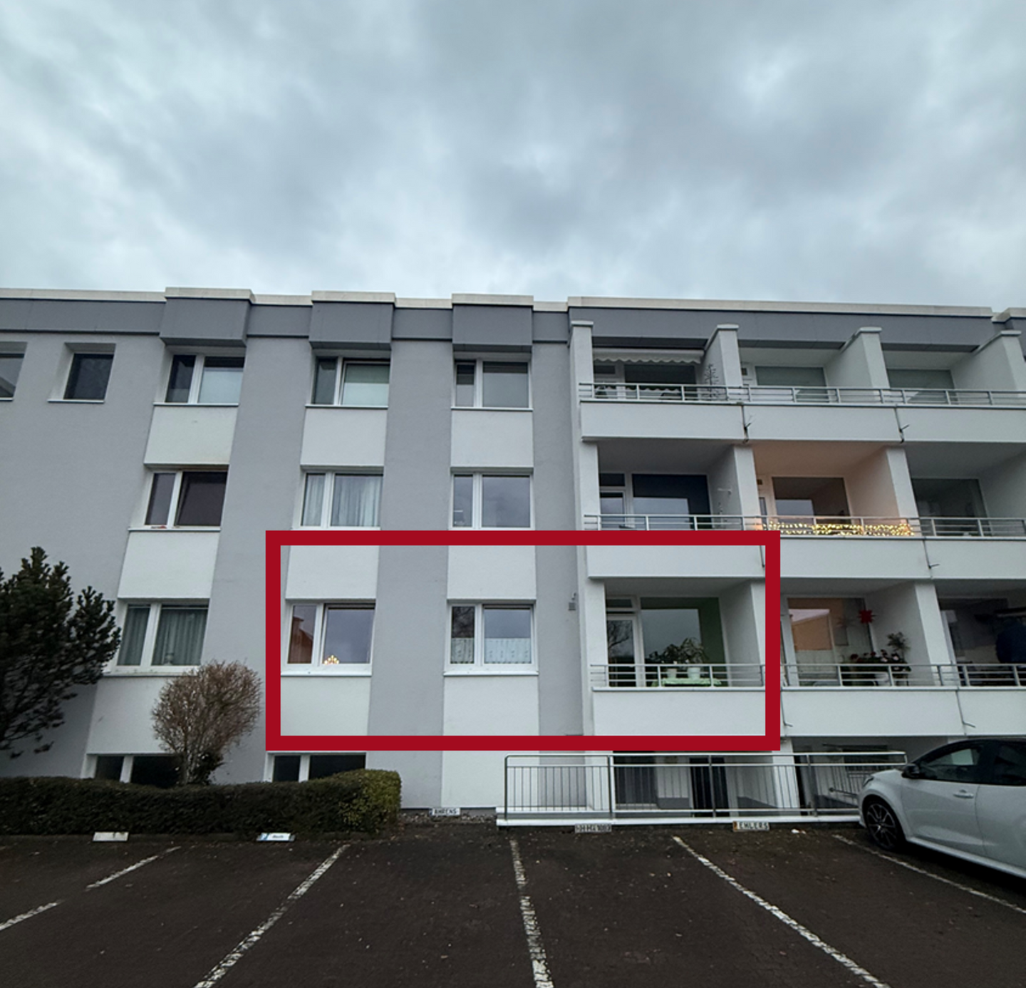 Zur Wohnung gehören ein eigenes Kellerabteil sowie ein Außenstellplatz, was die Attraktivität für Mieter weiter erhöht.